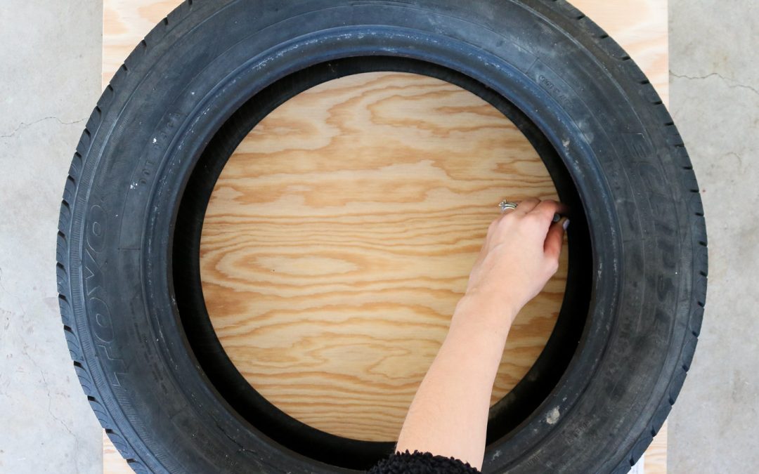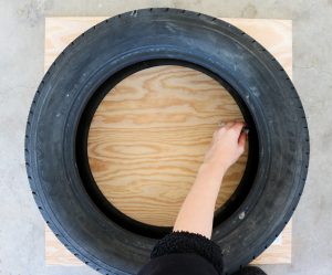 tracing a tire onto plywood