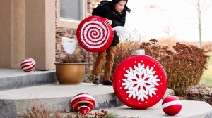 stealing a giant ornament and running away