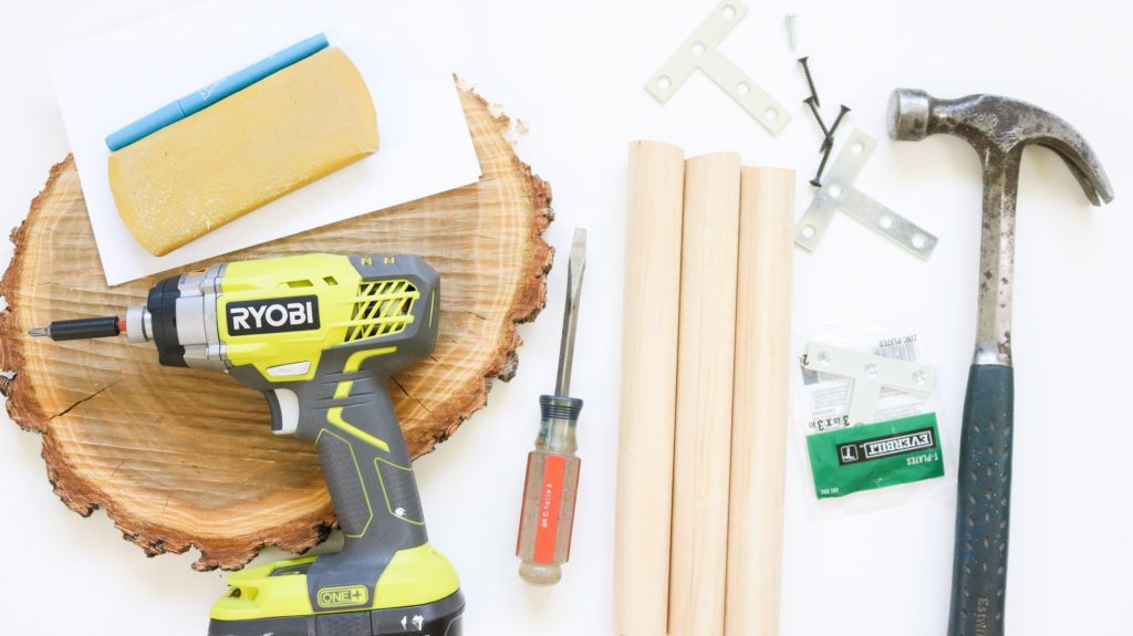 - miter saw ( you can also get your dowel cut to size at homedepot ) I used my dewalt miter saw. You can get one here. I use it all the time! There’s also cheaper options like this one here.