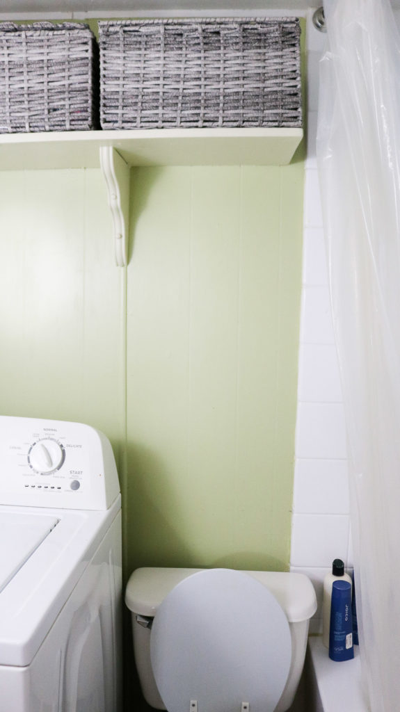 I have this shelf above my washer where I have a row of baskets and store all my bathroom goodies.