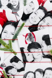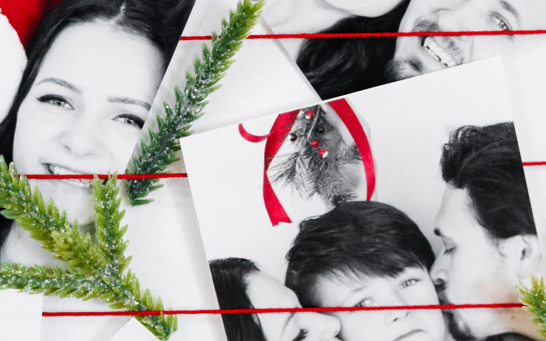 photos slipped under yarn and thread