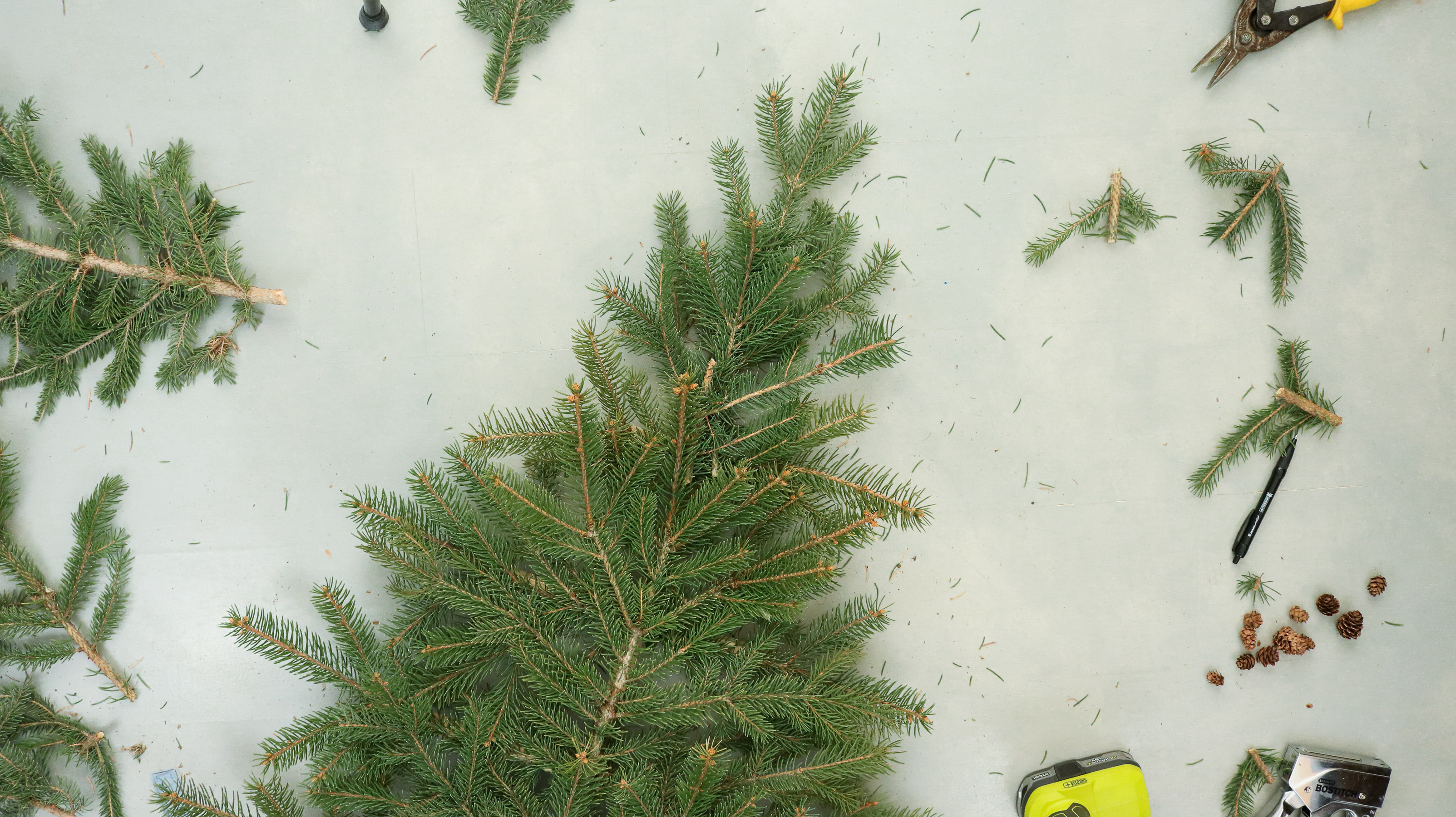 Your cost will really depend on whether you want to make a live tree or faux tree. Your faux tree might cost a bit more but could be reused. Here’s some faux pine I found on amazon (*affiliate link). They look realistic and have great reviews. 30 pieces for $15. You can check them out here.