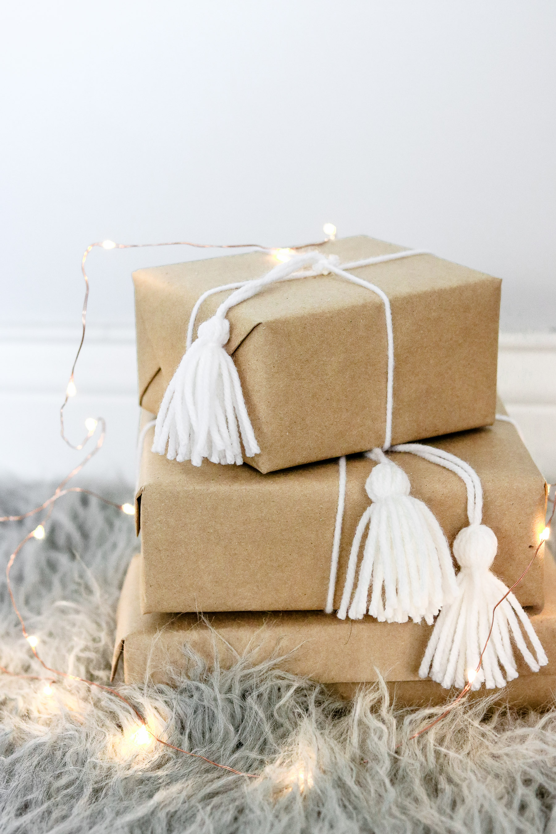 I made little tassels from yarn to decorate my gifts. 🙂