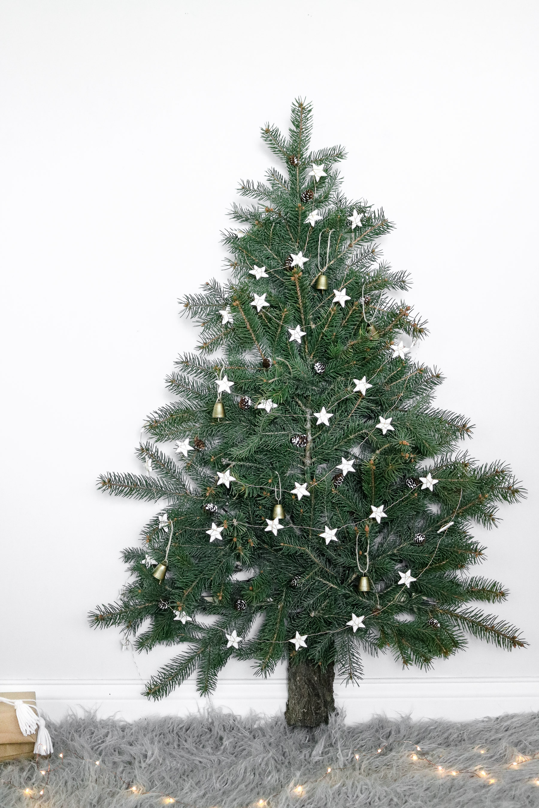 Christmas only comes around once a year and if you have a small space it doesn’t exactly help with decorating. The home we currently live in has plenty of space for a tree however, there was a time we lived in a tiny 800 square foot home that didn’t leave much space for a festive Christmas tree. Every corner was taken and if it wasn’t taken a Christmas tree wouldn’t fit. This year for those of you that are struggling with space I came up with this quick and easy space saving Christmas tree DIY. It takes about an hour to make and even better, it can be re-used yearly. There’s a few options to this Christmas tree that make it pretty fun. You can make it using faux pine branches or real pine branches. You can make it fluffy or slim to match any style you want. Best of all you don’t need a ton of ornaments and lights. Save money live better! LOL ( as quoted by walmart) Here’s a fun idea… If your family loves going out and cutting down the perfect Christmas tree every year you can do this as a family project. You still get the real Christmas tree smell and it actually lasts for a good 3 weeks. Than simply remove the dead pine branches after Christmas and save the wooden base for the following year. A new Christmas tradition if you live in a tight space?! 😬. It’s a great family project and your kiddos will love it. If you don’t have time to make a tree every year than just use some faux pine branches sold at any craft store. A few more ways you can make it is by up-cycling an old tree.. (from a thrift store etc) OR if you’re on a tight budget the dollar store sells mini Christmas trees that you might be able to salvage for this project. My favorite part about having it made from faux pine is that it’s super easy to set it and if you were to ever move into a bigger home you can still always use it in your bedroom or kids room. AWESOME! RIGHT! Quick video version